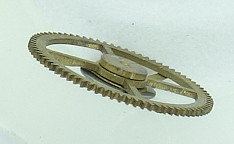 Die Rutschkupplung, die sich auf der Achsenhülse befindet, überträgt mir ihren drei federnden Armen die Kraft auf den beweglichen Zahnkranz, welcher wiederum in das Zentralsekundentrieb eintreift.