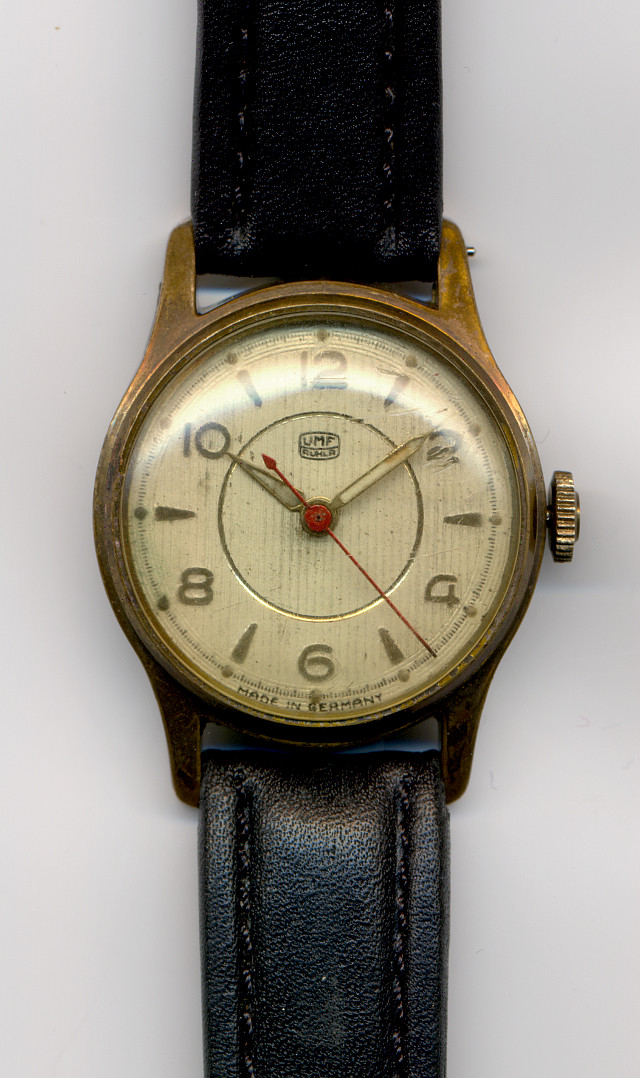 Der Aufbau des UMF 44 ist einfach und geradlinig: Federhaus (auf “11:30”), direkt angetriebenes Minutenrad, Kleinbodenrad, Sekundenrad und Ankerrad. Letzteres wird von einem Stiftanker reguliert. Eine Besonderheit ist, daß die Ringunruh, die weder stoßgesichert, noch steingelagert ist, und in zwei Körnerlagern läuft, sich unter einer Unruhbrücke befindet. Bei späteren Werken, wie dem berühmten Kaliber 24, wurde wieder auf einen Unruhkloben zurückgegriffen.