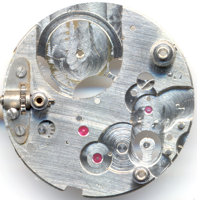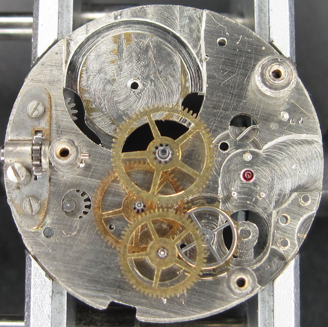Warum bei der fünfsteinigen Version ausgerechnet das Sekundenrad- und das Kleinbodenrad-Lager zifferblattseitig mit Rubinen versehen ist, und nicht die beiden wesentlich kritischeren Ankerradlager, läßt jede Menge Raum für Spekulationen.