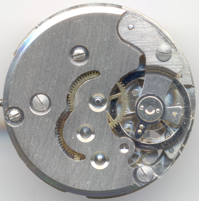 Die flache und leichte Ringunruh ist nicht stoßgesichert und schlägt nur mit 18000 Halbschwingungen pro Stunde. Die Decksteine der Unruhlager bestehen sogar nur aus Metallplättchen! Die Unruh reguliert über eine Stiftankerhemmung das Werk. Das Ankerrad ist hierbei interessant ausgeführt, möglicherweise wurden zwei Metalle hierfür aufeinandergepreßt: