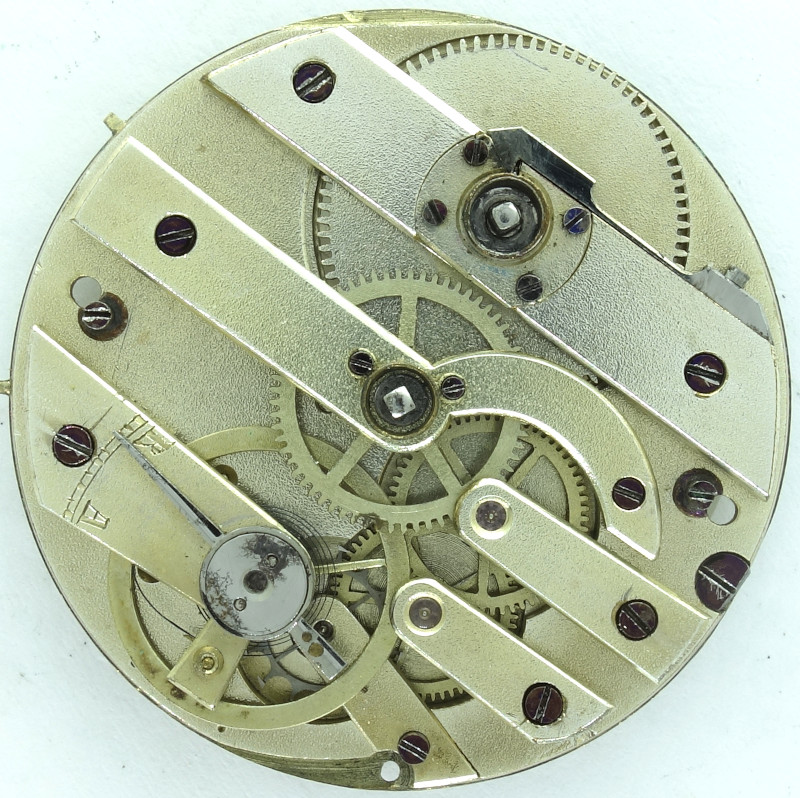 Das hier vorgestellte Werk dieser Bauform ist mangels Herstellersignatur keiner Fabrik zuordenbar, und auch über seine Größe von 13 3/4 Linien (vielleicht auch offiziell 14 Linien?), entsprechend 31,0mm, ist keine nähere Bestimmung möglich.