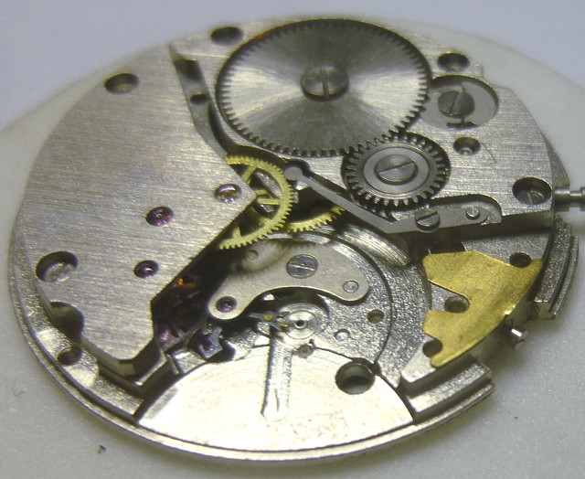 Das Räderwerk ist mit direkt angetriebenem Minutenrad und indirekter Zentralsekunde Stand der Technik der 50er und 60er Jahre.