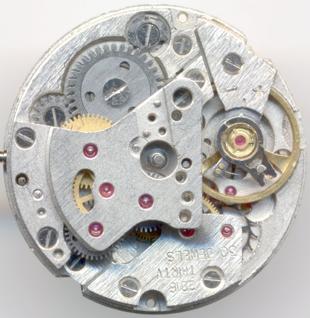 Das einzige nicht mit Steinen ausgestattete Lager ist das Federhaus.