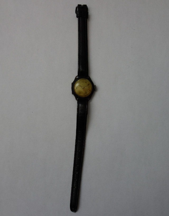 Mit dieser netten Beschreibung ihrer Spende überraschte Cornelia Bergemann das Uhrwerksarchiv. Es handelt sich hierbei um die alte Uhr ihrer Schwiegermutter, die, auch wenn sie äußerlich nicht wirklich unansehnlich ist, doch ein sehr schönen Innenleben in Form eines dekorierten ETA 361 vorweisen kann. Und nach einer Reinigung wurde auch das Silbergehäuse wieder ansehnlich, nur das Cellulose-Glas, das tatsächlich unansehnlich ist, ist leider nicht zu retten, da es im Laufe der Zeit milchig, brüchig und verzogen ist.