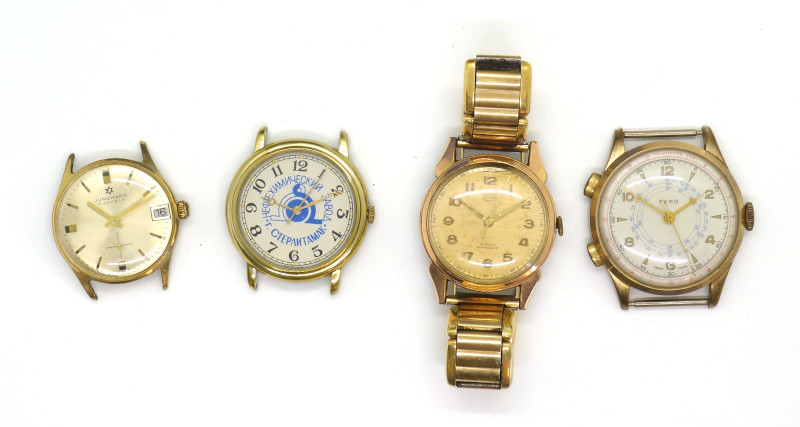 Diesmal sind ein Junghans 620.12, ein Zaria 2009B, ein Mauthe 1002 und der Scheinchronograph Desa 266 am Start, alle in hervorragendem Zustand.