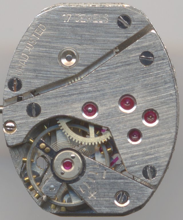 Vom Aufbau her ist es dagegen ein reinrassiges Palettenankerwerk, das mit 17 Lagersteinen (darunter ein Deckstein für das Ankerrad, interessanterweise hier zifferblattseitig) komplett ausgestattet ist.