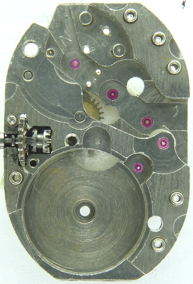 steingelagert, das langsam drehende Minutenrad besaß werksseitig einen Lagerstein und dem