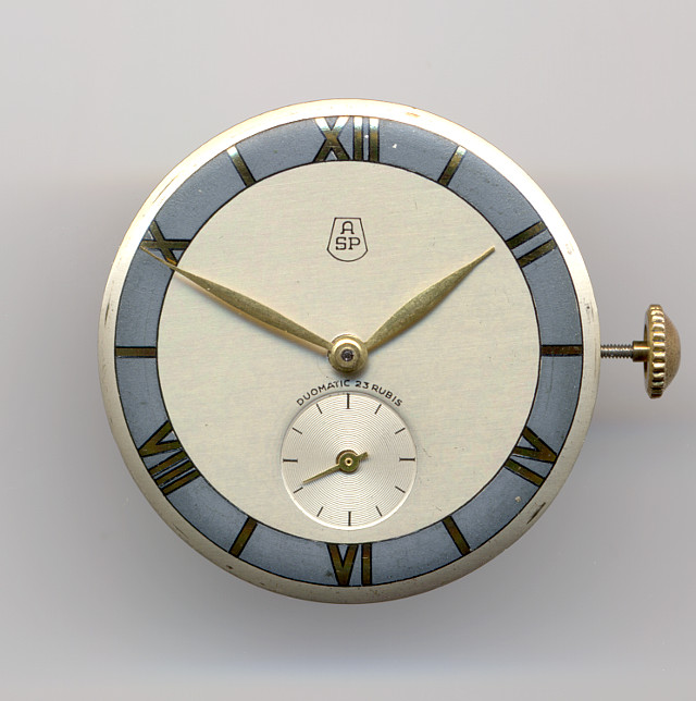 Der eigentliche “Duomatic”-Mechanismus von Spetzler (ASP) ist das Modul mit Pendel und den beiden Übertragungsrädern.