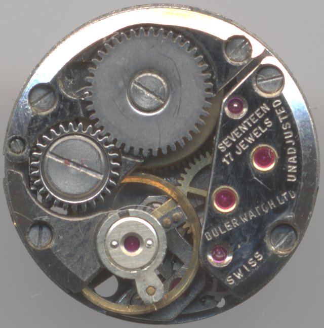 Mit 17 Steinen, darunter jede Menge Decksteine, die in einer Art Chatons eingefaßt sind, mit dem Kupplungsaufzug und der teilweise polierten Platinenoberfläche zählt es sicher zu den besten je hergestellten Baumgartner-Stiftankerwerken.
