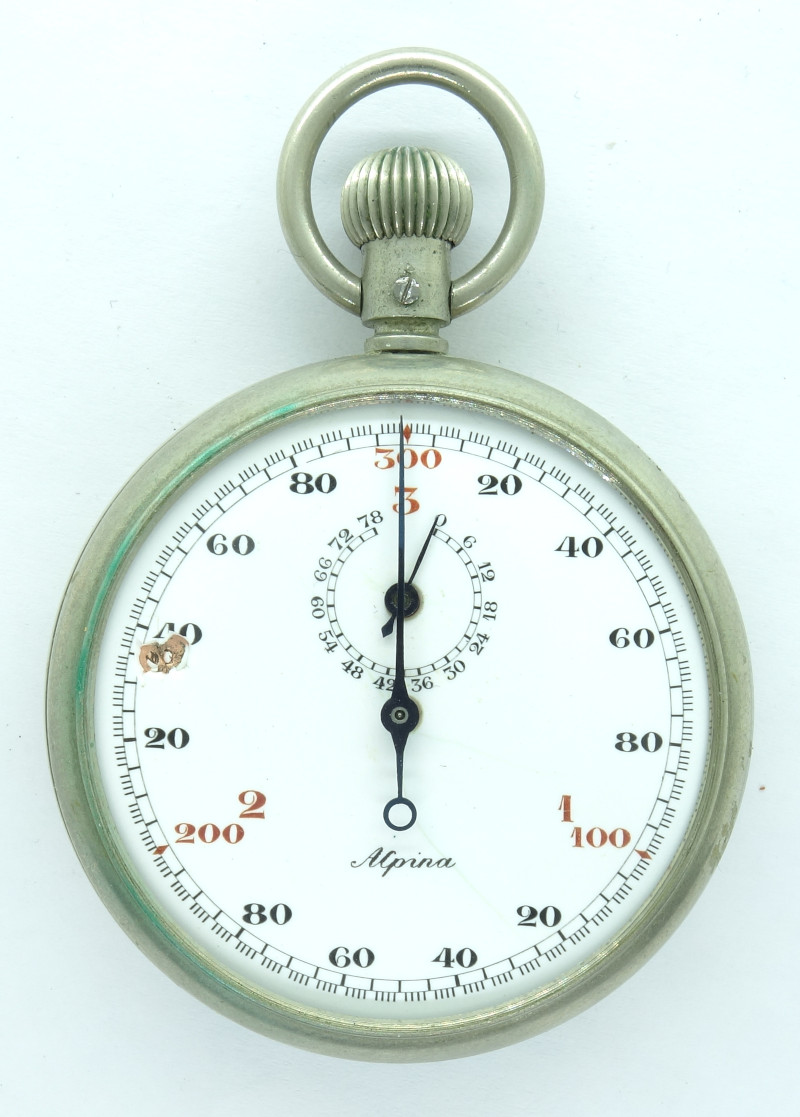 Das 18 1/2 linige Kaliber wird ausschließlich über die Krone bedient (Start - Stopp - Rückstellung) und auch über diese aufgezogen.