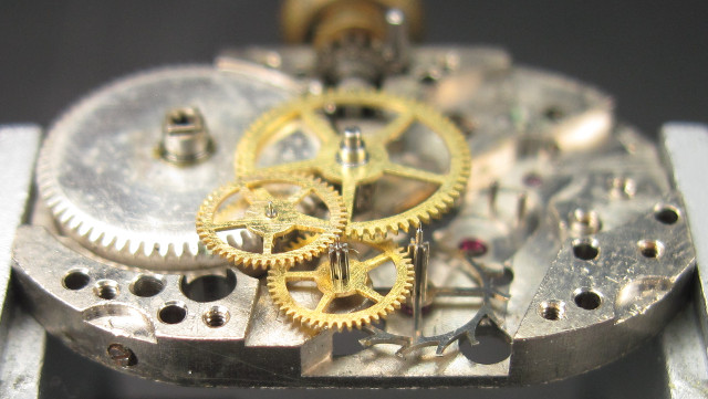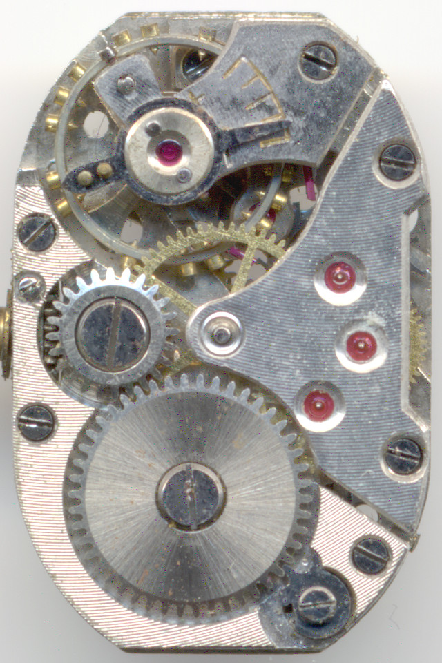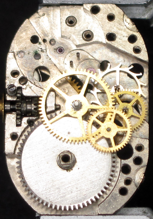 Charakteristisch für dieses Werk sind die wirklich winzigen Sekunden- und Kleinbodenräder, letztes mit einer extrem langen Achse. Daß dies nicht unbedingt uhrmacherfreundlich ist, versteht sich von selbst, aber der limitierte Platz läßt hier keine andere Lösung zu.