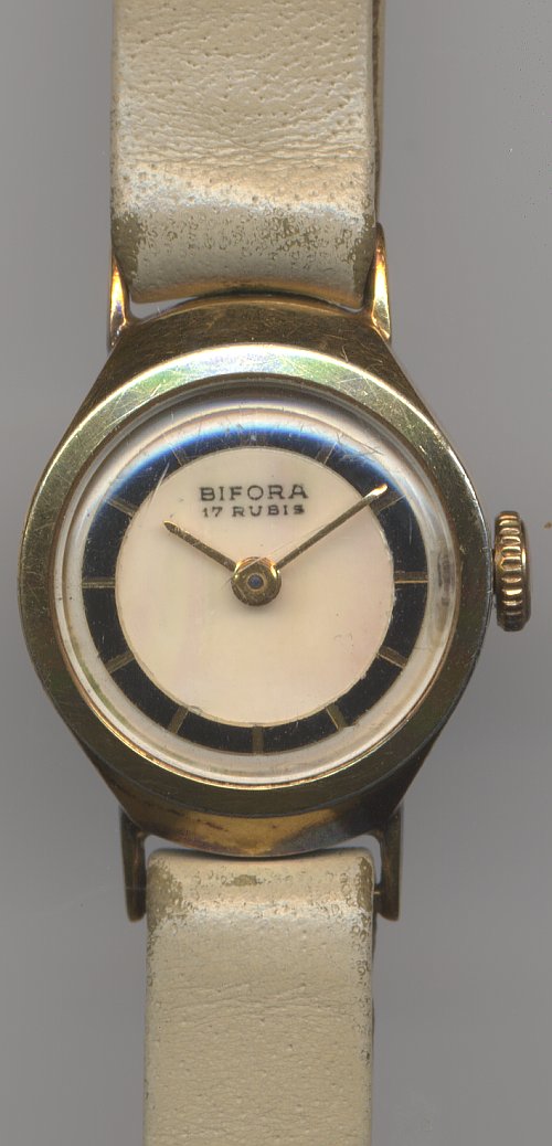 Dies ist eines der gängigen Formwerke von Bifora, das in zahlreichen Damenuhren verbaut wurde. Es besitzt eine Steinankerhemmung mit Nickelunruh, die in einer hauseigenen Bishock-Stoßsicherung gelagert ist und deren Gang mit Hilfe eines langen Rückerzeigers und Skala reguliert wird. Der restliche Werkaufbau ist der gewohnte Standard, einzig die sehr dichte Bauweise (bei 3 Uhr) ist bemerkenswert, sie ermöglicht ein größeres Federhaus und damit bessere Gang und Gangreservewerte.