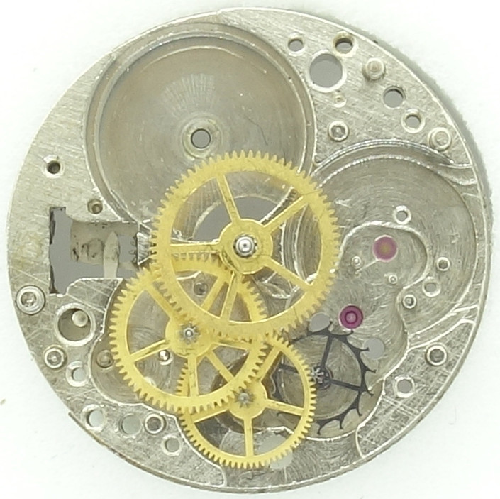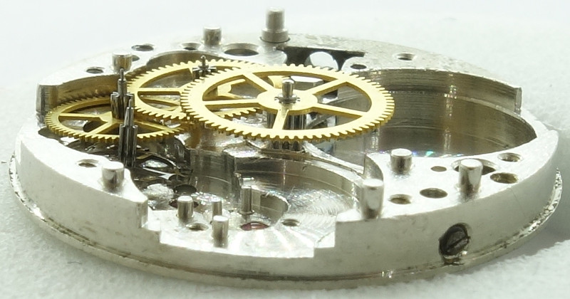 Der sehr geringe Werksdurchmesser erfordert, dass das Aufzugstrieb aus Stabilitätsgründen nicht direkt am Rand der Grundplatine gelagert ist, sondern etwas weiter innen. Da das aber wiederum zu weit innen für das Kronrad wäre, besitzt das Kronrad auf seiner Unterseite eine etwas weiter innen liegende Verzahnung, die im Eingriff mit dem Aufzugstrieb steht.