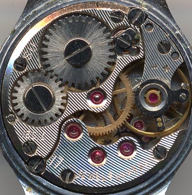 Es ist mit einem starken Streifenschliff versehen, und besitzt eine dreischenklige, stoßgesicherte Nickel-Unruh.