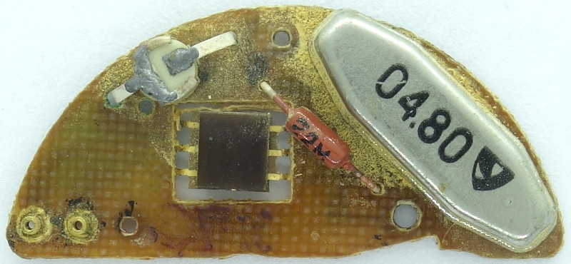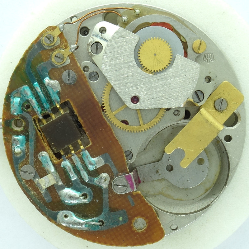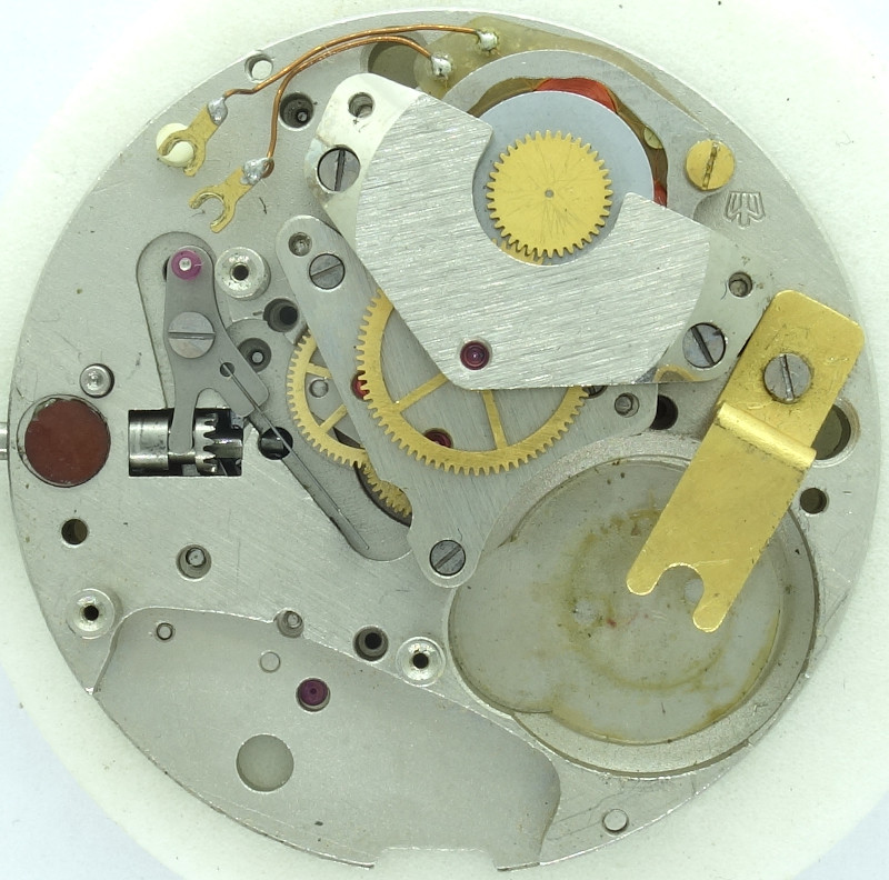 Der sehr große Biegeresonator-Quarz erinnert wiederum an die Frühzeit der schweizer Quarzwerke; 1977 waren solche Monster jedenfalls längst obsolet, und man setzt auf die bis heute deutlich kleinere und einfacher zu produzierenden Stimmgabel-Quarze.