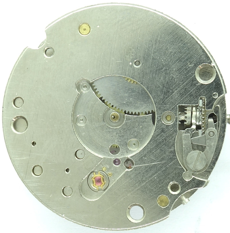 Das Gesperr befindet sich dagegen auf der Oberseite der Räderwerksbrücke.