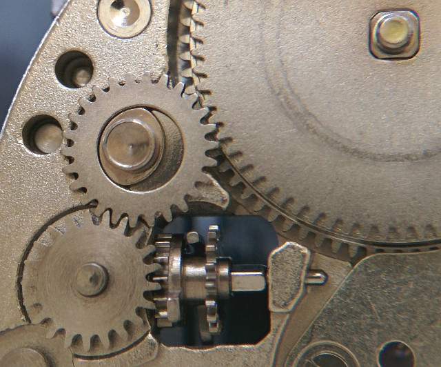 Die Sperrklinke ist dagegen eher dem Automaticmechanismus zuzurechnen, da sie dort beheimatet ist und erst auf das letzte Reduktionsrad einwirkt. In Verbindung mit dem darauffolgenden Kupplungsrad, das nur in einer Drehrichtung Kraft überträgt, sorgt es dafür, daß der Rotor nur in einer Richtung aufzieht, in der anderen Richtung leer läuft, und es in keinem Fall zum Ablaufen des Federhauses über den Automaticmechanismus kommt.