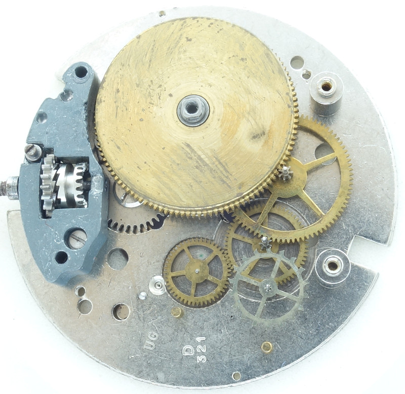 Das Räderwerk des Desa 321 folgt den bekannten Prinzipen eines Roskopf-Werks, bei dem vor allem das deutlich über die Mitte hinausgehende Federhaus, sowie die Einsparung eines Übertragungsrads charakteristisch ist.