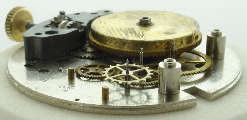 Eine zifferblattseitige Stoßsicherung oder Steinlager für die Unruh und Zahnräder sucht man vergeblich, dafür aber verwendet das Desa 321 einen waschechten Kupplungsaufzug.