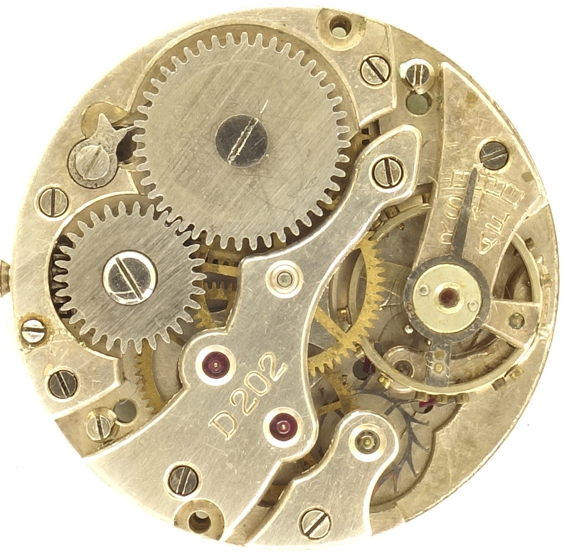 Es hat den Standarddurchmesser von 10 1/2 Linien und besitzt 15 Steine, einige von ihnen, möglicherweise kriegsbedingt, transparent und nicht rubin-rot.