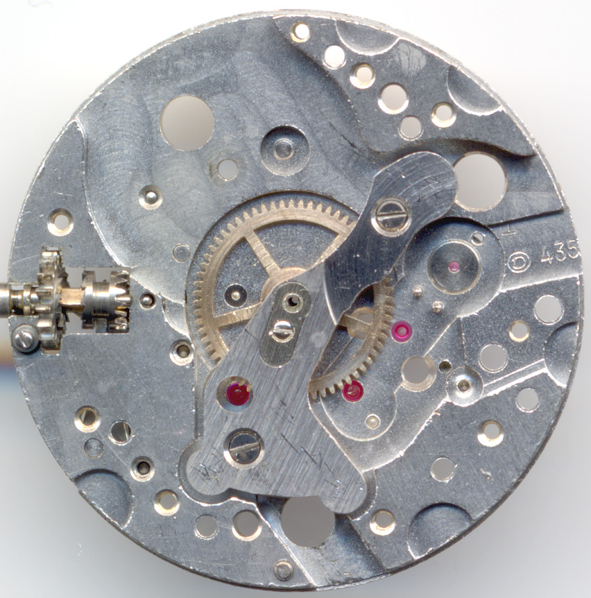 Dieses Werk besitzt ganz zeittypisch ein direkt angetriebenes Minutenrad, das unter einem eigenen Kloben gelagert ist. Ein Stockwerk darüber befindet sich dann die ebenfalls direkt angetriebene Zentralsekunde.