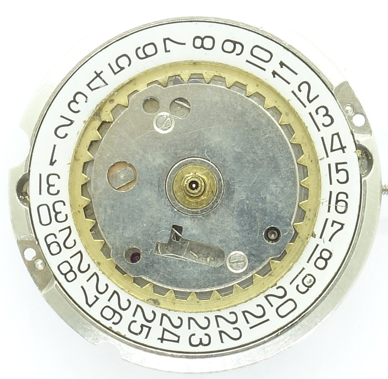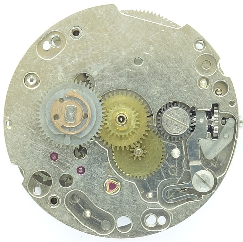 Der Datumsring wird mit einer Feder-Klinken-Kombination in genauer Position gehalten, die Funktion der zweiten Feder (bei 6 Uhr) ist nicht bekannt, da sie nicht auf das Sternrad der Wochentagsanzeige einwirkt, welche aber ohnehin von Haus aus stets richtig positioniert ist.