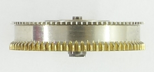 Das Datumsschaltrad wird über das Stundenrad angetrieben. Es besitzt einen starren Finger, zum Vor- und Zurückschalten des Wochentags, sowie einen federnden Finger, mit dem das Datum vorgeschaltet und durch Vor- und Zurückdrehen der Uhrzeit auf 20 Uhr halbschnell korrigiert werden kann.