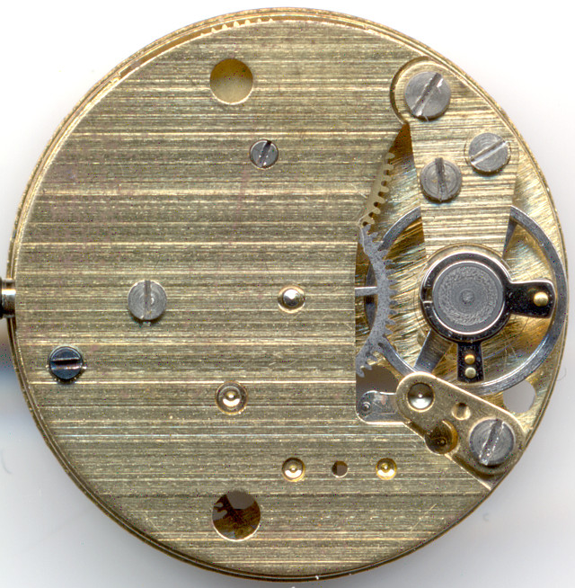 Die nicht stoßgesicherte Ringunruh läuft in zwei Körnerlagern und schlägt mit 18000 Halbschwingungen pro Sekunde. Der Ellipsenstein der Unruh ist der einzige Stein in diesem Werk, und er bewegt einen Stiftanker, der auf einer sehr langen und damit sehr reparaturunfreundlichen Achse sitzt.