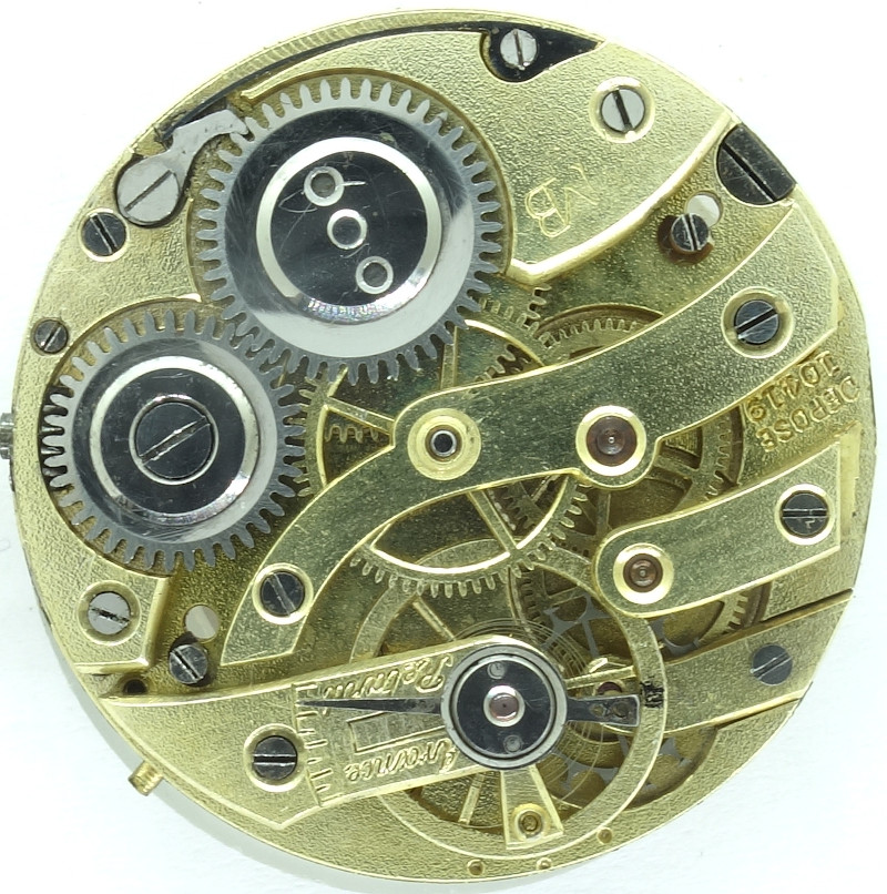 Die flache, dreischenklige Ringunruh, die natürlich noch nicht stoßgesichert ist, arbeitet mit 18000 Halbschwingungen pro Stunde, die mit Hilfe eines langen Rückerzeigers im Bereich des technisch Möglichen justiert werden können. Dennoch sind Gangabweichungen im Minutenbereich nichts ungewöhnliches für diesen Werkstyp.