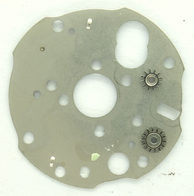 Sehr einfach ist die Räderwerksbrücke ausgeführt, sie besteht nur noch aus einem flachen Stanz-Teil mit gebohrten Lagern, einzig das sichtbare Lager des Sekundenrads bekam einen Lagerstein spendiert.