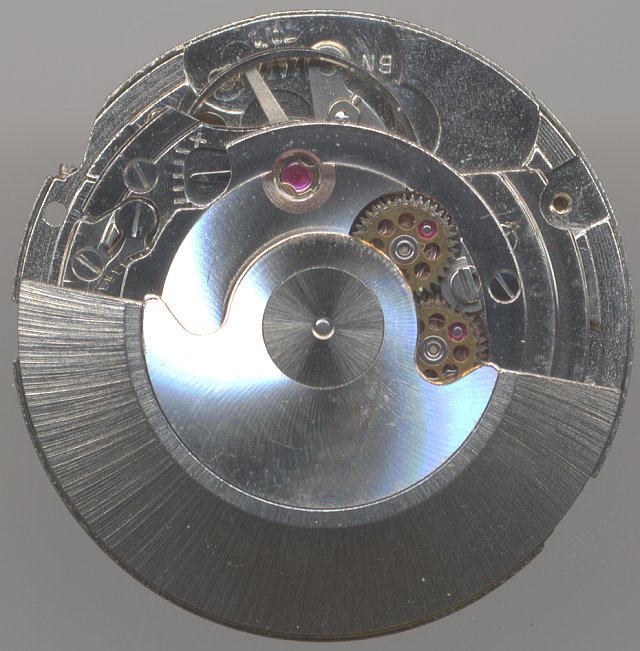 Die große Ringunruh schlug noch gemächlich mit 18000 Halbschwingungen pro Stunde und war selbstverständlich in zwei Incabloc-Stoßsicherungen gelagert. Neu war, daß der Spiralklötzchenträger schon beweglich angebracht war und dadurch zusammen mit dem langen Rückerzeiger eine recht effektive und schnelle Regulierungsmöglichkeit geboten wurde.