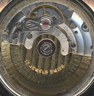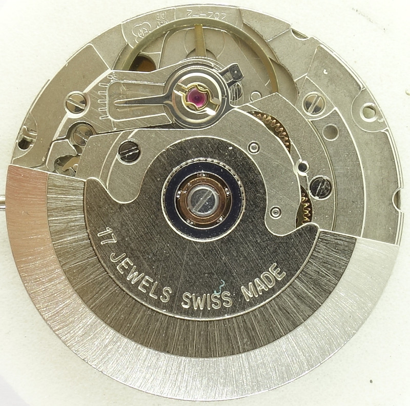 Der kugelgelagerte Rotor steht mit beiden Wechselrädern der Automaticbaugruppe in Eingriff. Je nach Drehrichtung des Rotors ist eines der Räder im Freilauf, so dass der Aufzug über die nachfolgenden Räder stets in derselben Richtung stattfindet.