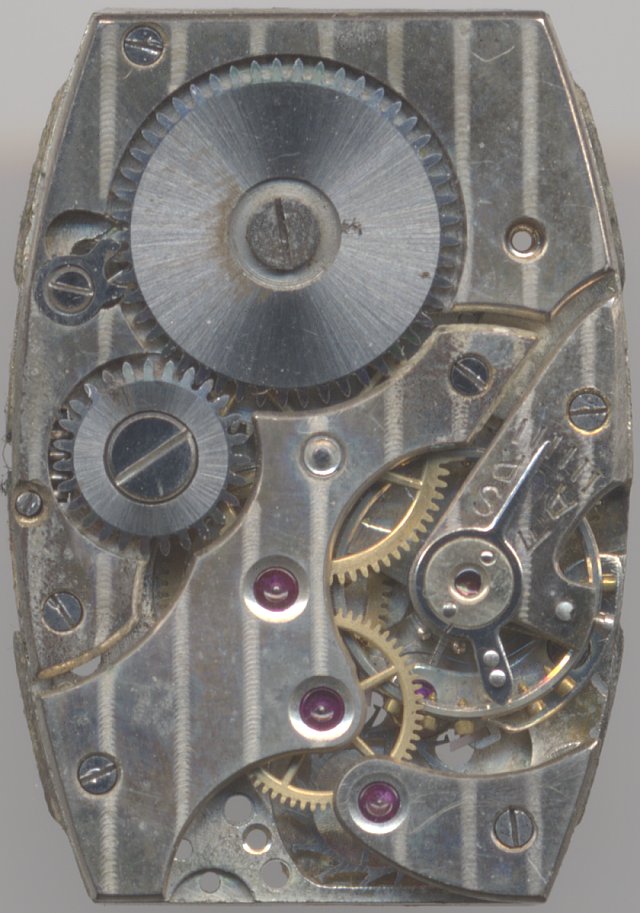 Es besitzt eine Nickel-Schraubenunruh (nicht stoßgesichert), einen langen Rückerzeiger, eine dezentrale Sekundenanzeige und ein großes Federhaus. Das Ankerrad ist hierbei in einem eigenen Kloben gelagert.