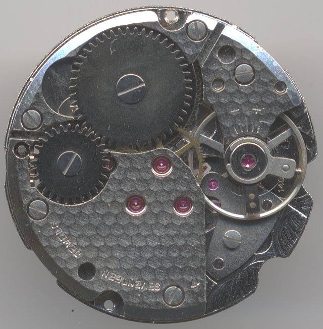 Reichlich kurios ist die Verwendung des 17. Lagersteines: Wie man auf der zifferblattseitigen Ansicht sieht, dient er zur Lagerung des Zeigerstellrades. Auf der Liste der sinnlosesten Steinlager dürfte dieser Lagerstein jedenfalls ganz oben stehen.