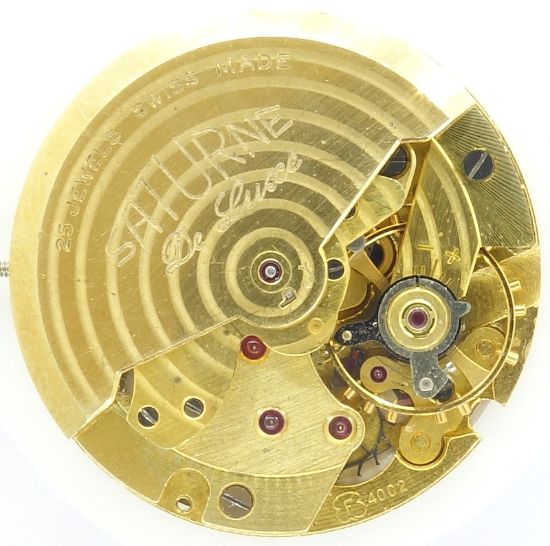 Die optisch gefälligste Ausführung war vergoldet, hier kommt die reichhaltige Ausstattung mit Steinlagern wunderbar zur Geltung. Bis auf das reibungs-unkritische Federhaus sind selbstverständlich sämtliche Lager mit Rubinen ausgestattet.
