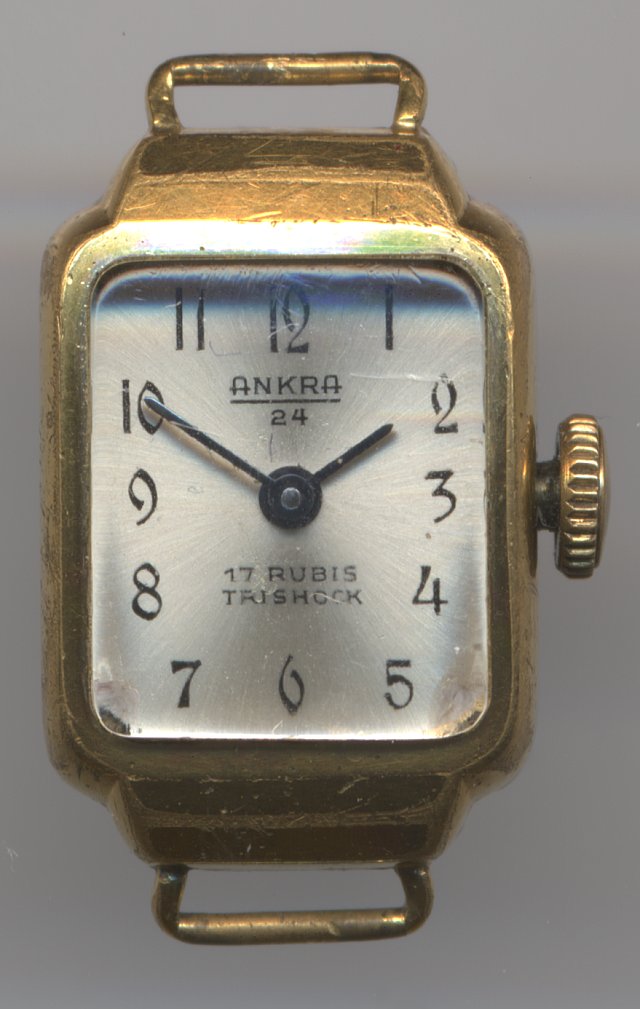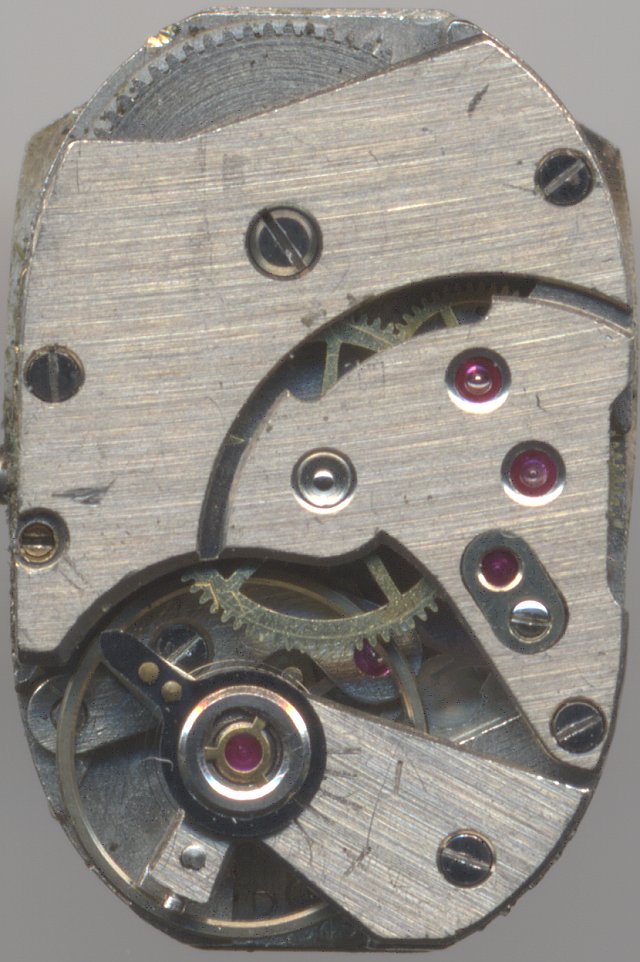 Dieses Formwerk besitzt zwar eine klassische Ankerhemmung mit Felsa-typischen durchsichtigen Ankerpaletten, aber der Rest des Werks, die eher einfachere Trishock-Stoßsicherung, der fehlende Rückerzeiger und der zifferblattseitige Wippenaufzug sind eher verwunderlich. Offenbar wurde Damenuhren damals nicht immer die bestmögliche Qualität zugestanden.