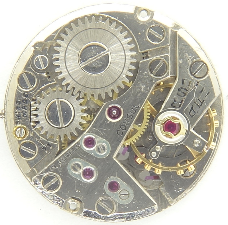 Der Aufbau des Räderwerks ist zeitgemäß modern: Das Federhaus treibt das zentrale Minutenrad an, gefolgt von Kleinbodenrad, Sekundenrad und Stahl-Ankerrad.