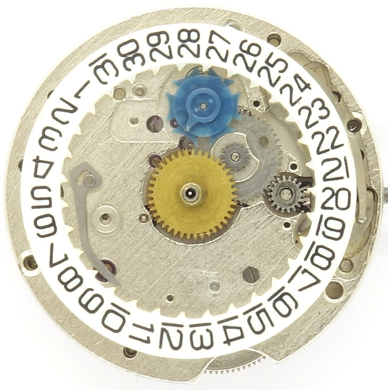 Ganz besonders problematisch ist die Feder des Sperrhebels. Um sie in Position zu halten müßte die Plastikabdeckung wesentlich stabiler sein. Wenn das nicht der Fall ist, kann sie den Sperrhebel nicht mit ausreichender Kraft gegen die Nasen des Datumsrings drücken.