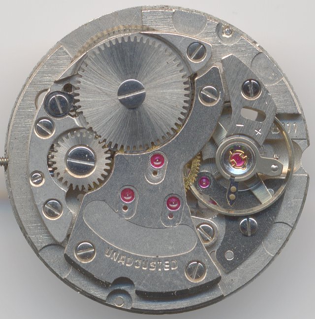 Die Zentralsekunde ist direkt angetrieben, ebenso das Minutenrad. Interessant ist allenfalls noch, daß das Federhaus zifferblattseitig mit einem Lagerstein versehen ist. Wirklich notwendig ist dies nicht, hat aber den praktischen Nebeneffekt, auf diese Weise die berühmten “17 Steine” erreichen zu können.