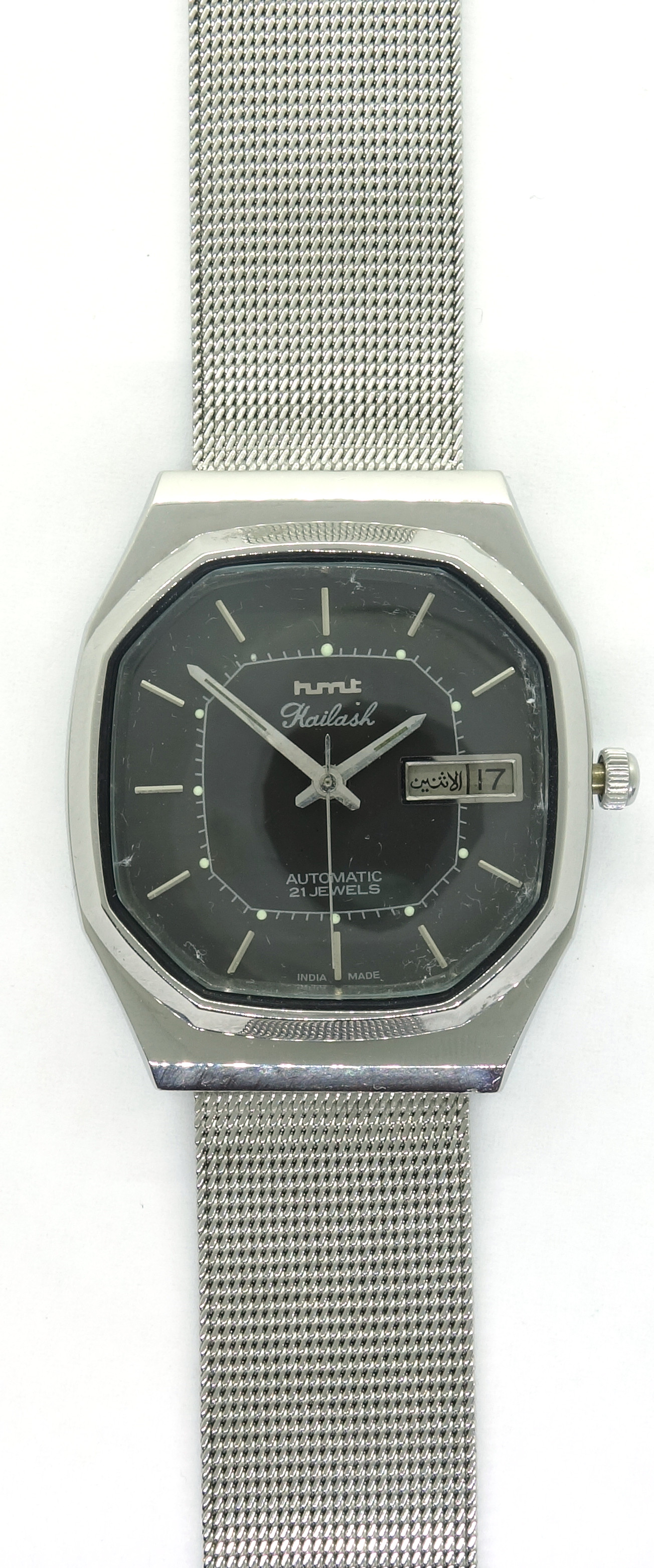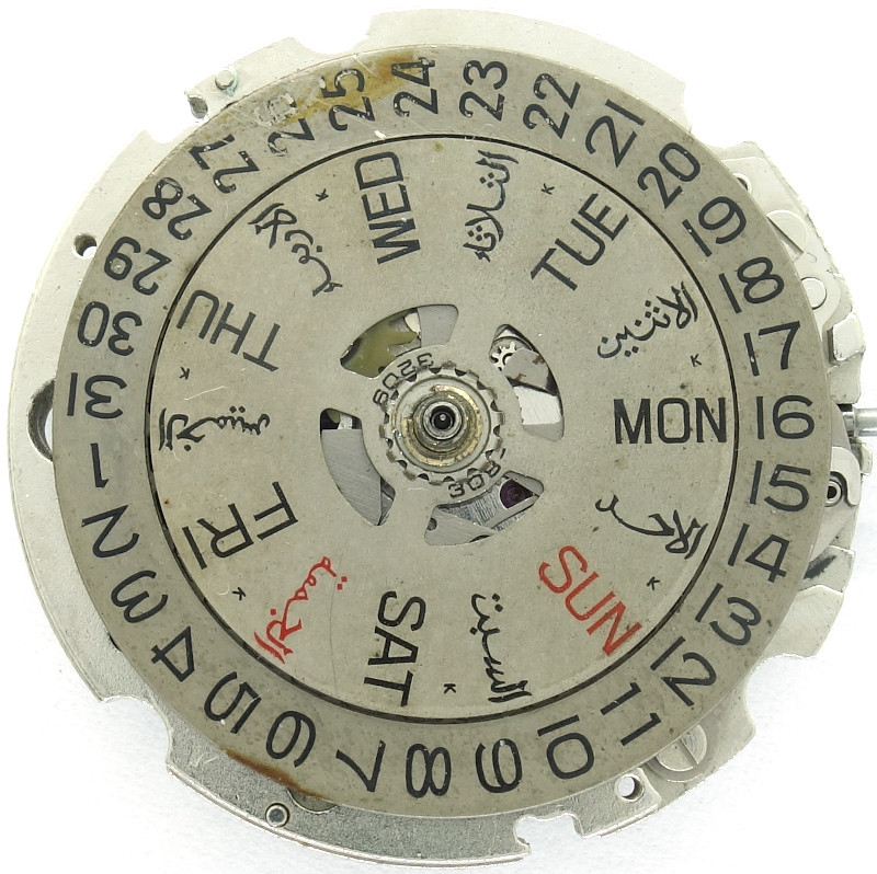 Das HMT 8205 bietet genau, wie das Citizen/Miyota 8205 eine zweisprachige Wochentagsanzeige.