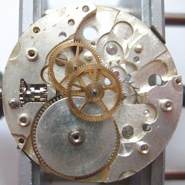 Der Aufbau des Räderwerks ist relativ modern, hier findet bereits eine direkt angetriebene Zentralsekunde Verwendung.
