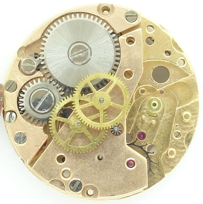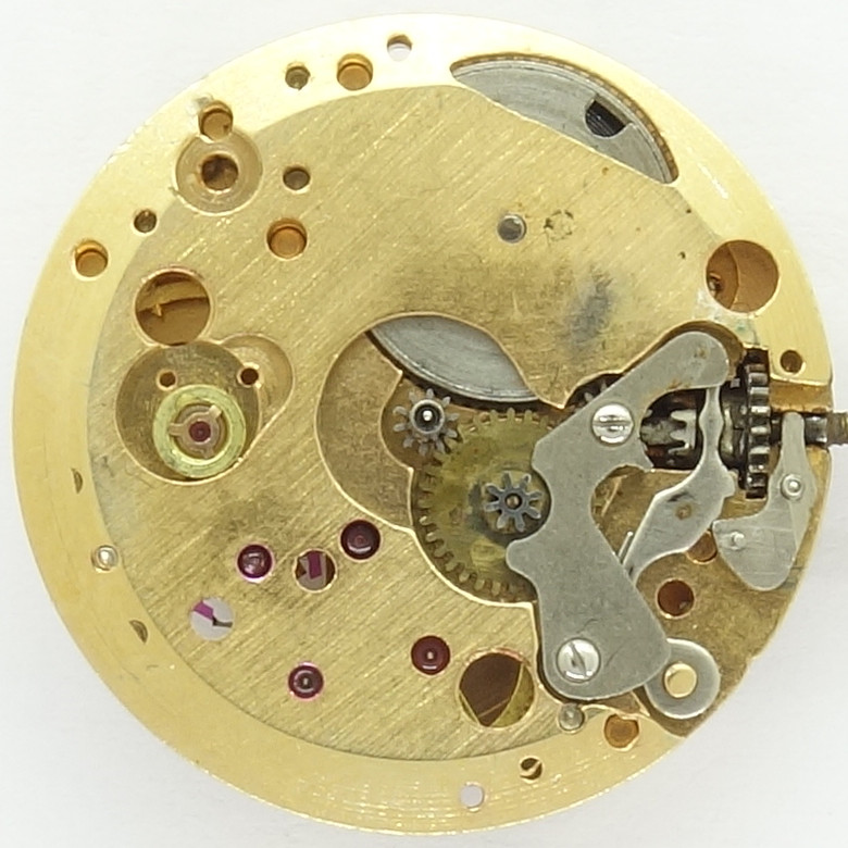 Die Identifikation dieses goldfarbigen, 8 3/4 linigen Handaufzugswerk war nicht einfach, es dürfte sich aller Wahrscheinlichkeit nach um Judex 46 SC handeln, später wurde es wohl in Sefea 53 umbenannt. Es steht in direkter Verwandtschaft zum 10 1/2 linigen Kaliber Judex 127B.