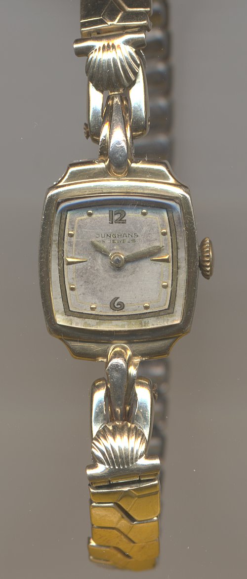 In den 50er Jahren produzierte Junghans das Kaliber J99/1, eine Weiterentwicklung des Kalibers J99, das hier um die hauseigene Stoßsicherung ergänzt wurde.