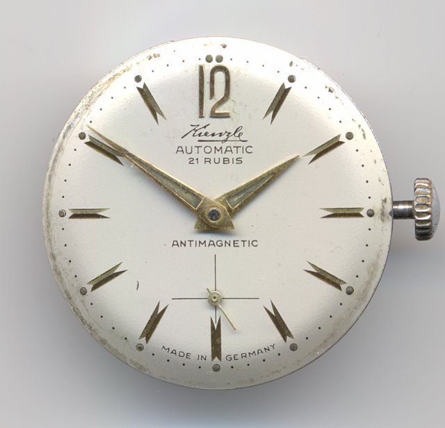 Das Kienzle Kaliber 057/21d, die sogenannte Volksautomatik, die Mitte der 50er Jahre auf den Markt kam, war das einzige hauseigene Automaticwerk der Schwennigner Uhrenfabrik.