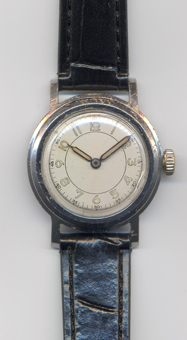 Auf der Zifferblattseite sieht man schön, dass das Werk prinzipiell auf in der Lage gewesen wäre, eine dezentrale Sekunde auf 6 Uhr anzuzeigen, aber hier gibt es bereits die damals hochmoderne Zentralsekundenanzeige.