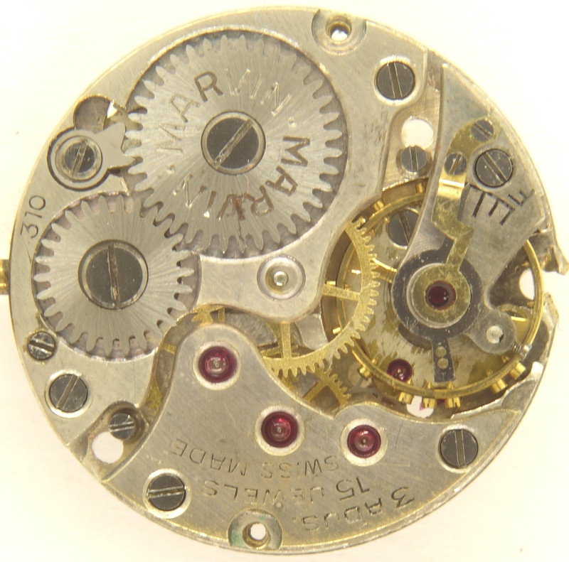 Das Marvin 310 ist ein 8 3/4 liniges Handaufzugswerk für Damenuhren, das aus den 1940er Jahren stammt.
