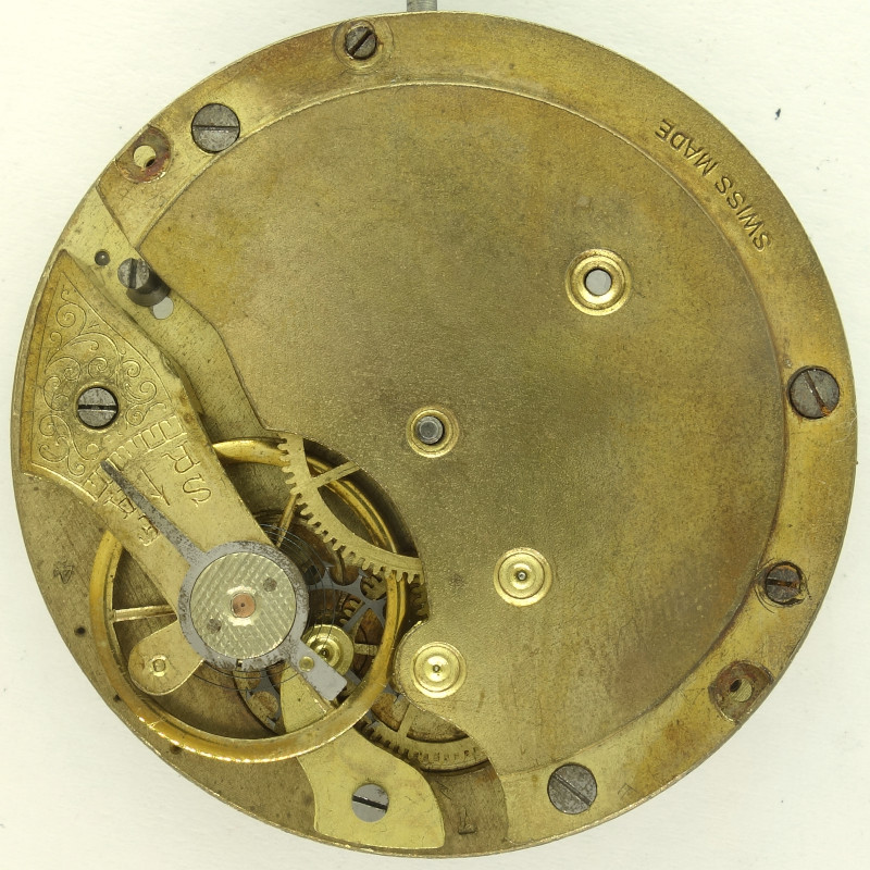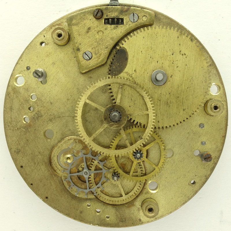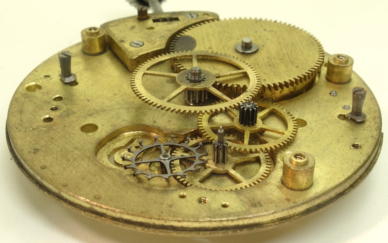 Es wird der für die damalige Zeit schon längst veraltete Räderwerksaufbau eines Zylinderwerks genutzt, mit Federhaus, zentralem Minutenrad, Kleinbodenrad, Sekundenrad auf 6 Uhr und dem Zylinderrad, das aus Stahl besteht.