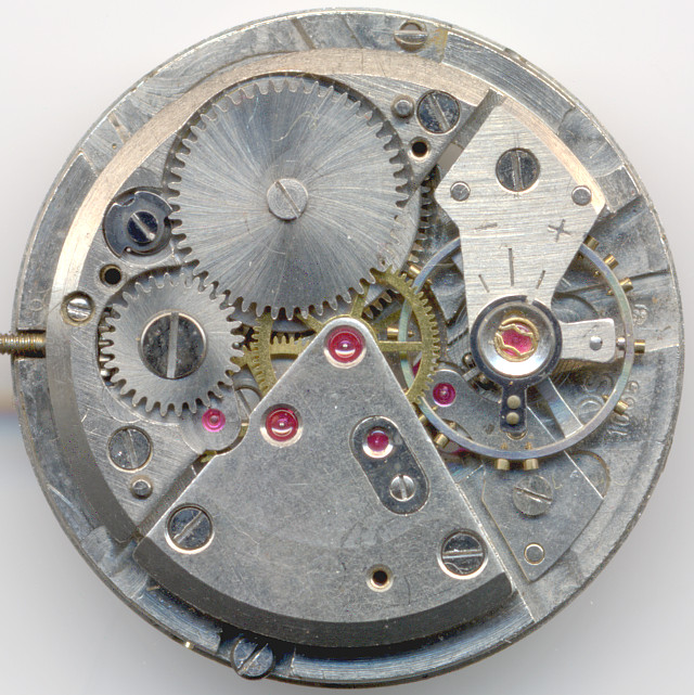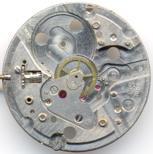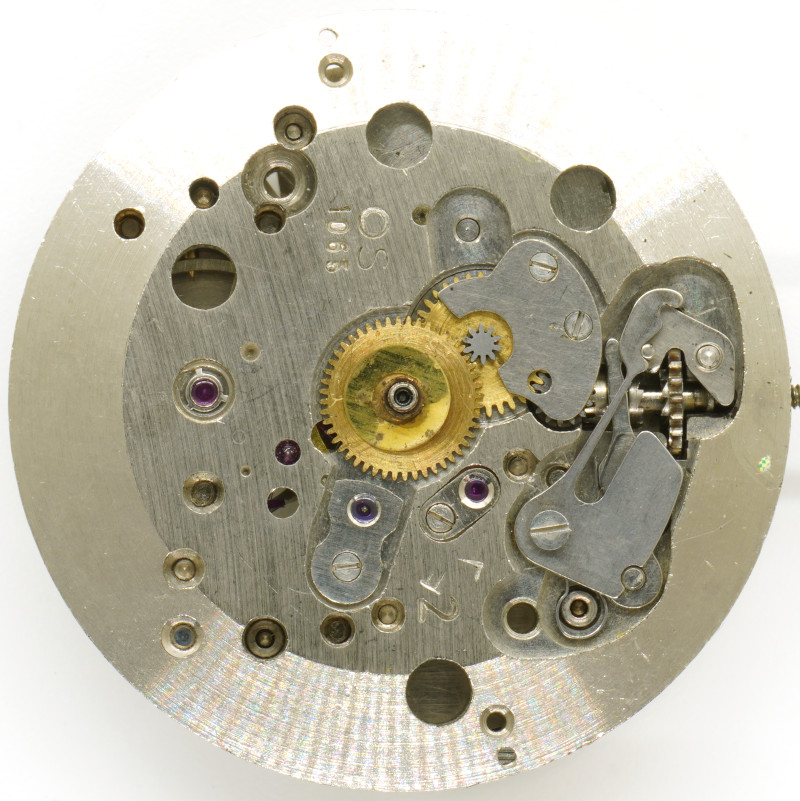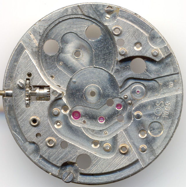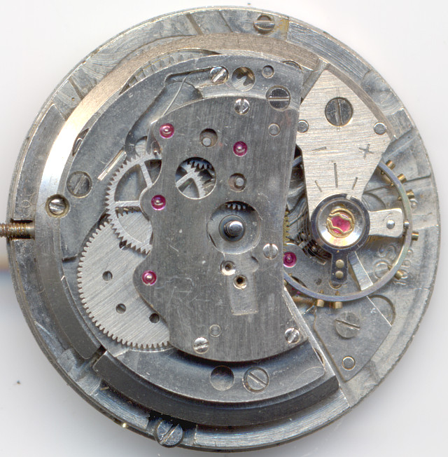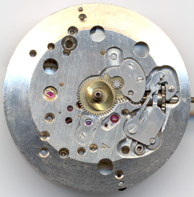 Solange das Automaticmodul nicht montiert ist, kann man gut die Verwandschaft zum Osco 1060 erkennen, die beiden größten sichtbaren Unterschiede sind der größere Durchmesser und das zusätzliche Lager neben den Kronrad zur Aufnahme des Automatic-Reduktions- und Kupplungsrades: