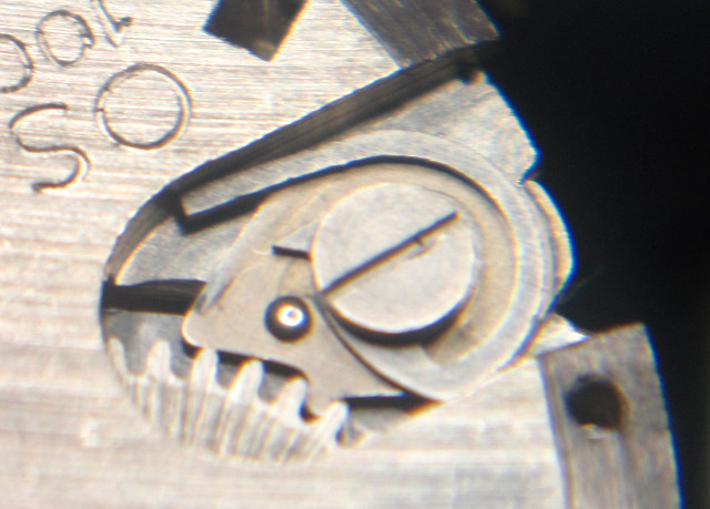 Mit Ausnahme der Unruhlager (4 Steine), der Ellipse (1 Stein), der beiden Ankerpaletten (2 Steine) und des werksseitigen Ankerradlagers (1 Stein) sind hier keine weiteren Lagersteine verbaut, das Werk kommt also mit 8 Steinen aus.