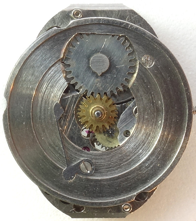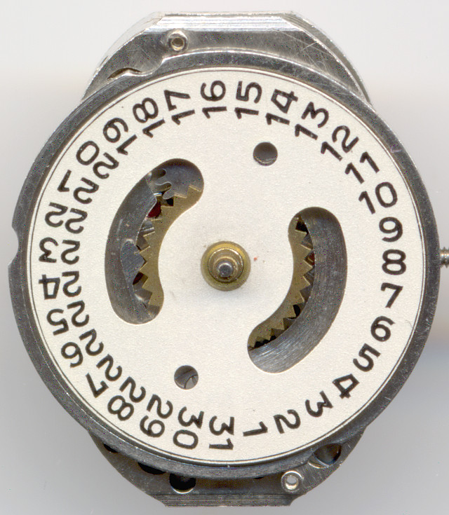 Ohne Datumsmodul ist die Zifferblattseite praktisch identisch identisch zu der des Otero 25 sowie das doppelten, oben grob verzahnte Stundenrad, das die Datumsindikation treibt.